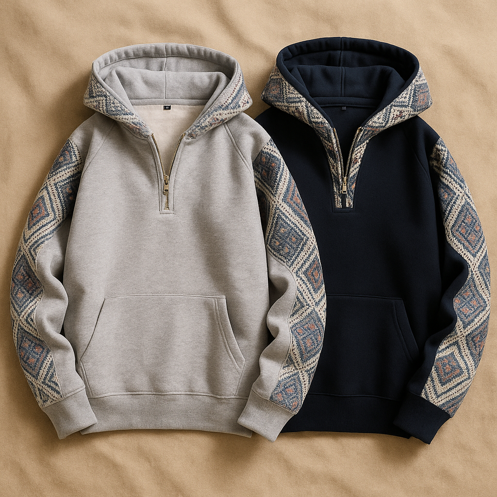 Elevate your look with the cozy sophistication of the Jilinity Quarter Zip Hoodie. This premium unisex layer adds instant style with its patterned sleeves and soft fleece interior—delivering warm, all-day comfort that lasts wash after wash.